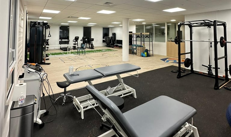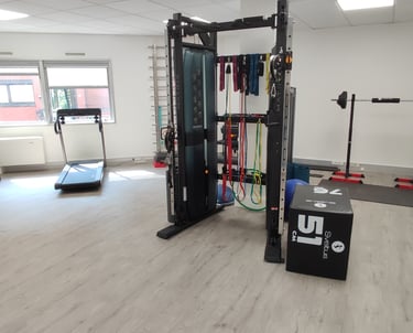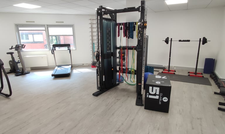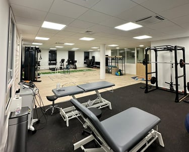 Le cabinet met à disposition : 3 boxs individuels, 1 box partagé et un grand plateau technique équipé Matrix et TechnoGym.